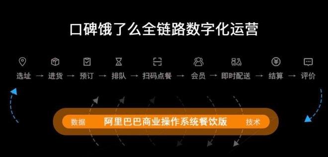 “全鏈路數字化”是指口碑餓了么共同連接餐飲行業的完整鏈條,涵蓋了餐飲業從選址、供應鏈,到預訂、排隊、叫號、掃碼點單、即時配送、支付、評價等環節。這一整套全鏈路的操作系統,也是對頭部餐飲企業進行的抽象總結,形成通用的行業工作流程。