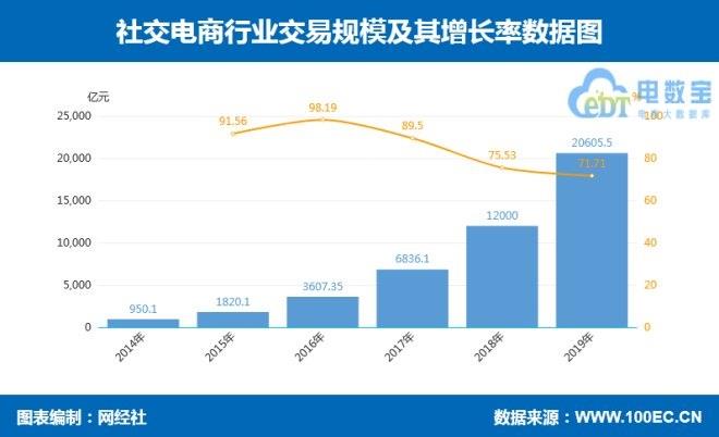 去年我國社交電商交易規模為20605.5億 增速下滑