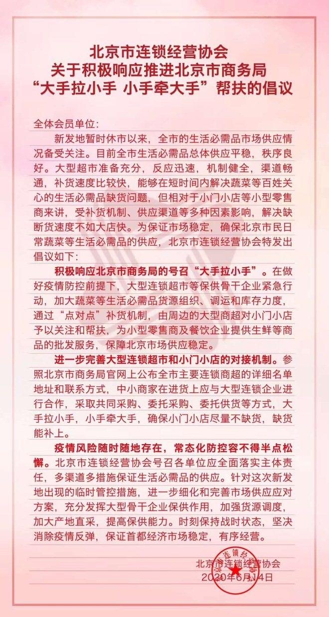 北京市連鎖經營協會連發兩大倡議 27家企業積極響應