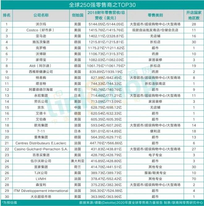 2020全球零售商排行:沃爾瑪蟬聯榜首 阿里首入榜單