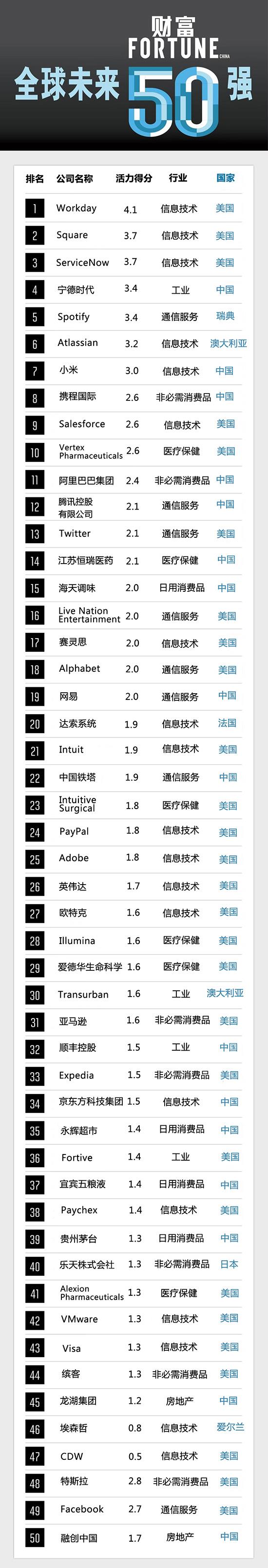 “未來50強”(Future50),由《財富》雜志攜手波士頓咨詢公司(BCG)在兩年前創建,以計算大型上市公司的長期增長前景,并確定即將脫穎而出的“明日之星”。