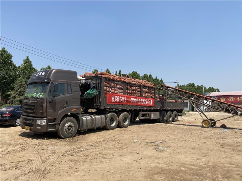 隨即,席晨杰一行立即聯(lián)系車輛、收購(gòu)點(diǎn)、確認(rèn)數(shù)量,采購(gòu)大蒜。同時(shí),與河南永輝相關(guān)部門聯(lián)動(dòng),在四十一家門店加強(qiáng)大蒜的推廣,按照收購(gòu)成本價(jià)銷售 。