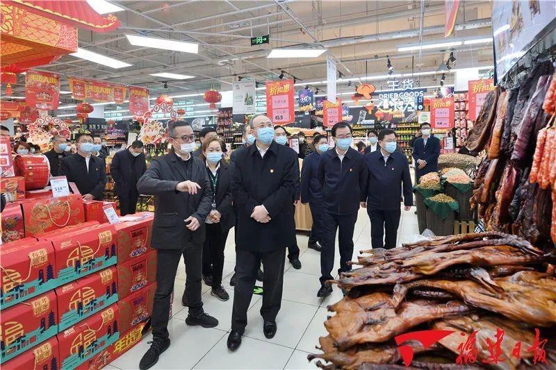 2月9日上午,永輝超市福州濱江金榕店里,洋溢著一派熱鬧的節日景象,商品琳瑯滿目、種類繁多,人們正在忙著挑選置辦年貨。福建省委書記尹力,福建省委副書記、省長王寧等省市領導蒞臨永輝超市,永輝超市董事長張軒松、永輝超市一戰區總經理陳穎陪同并做企業發展情況匯報。