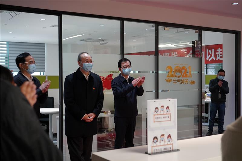 尹力、王寧等省市領導一行在張軒松的陪同下,深入了解超市線上線下銷售和倉儲情況,詳細查看生鮮水產、肉類和乳制品等貨品質量價格,并親切慰問假期堅守崗位的超市快遞小哥們。尹力、王寧叮囑永輝超市要精心組織貨源,穩定市場價格,保障節日期間的商品供應。