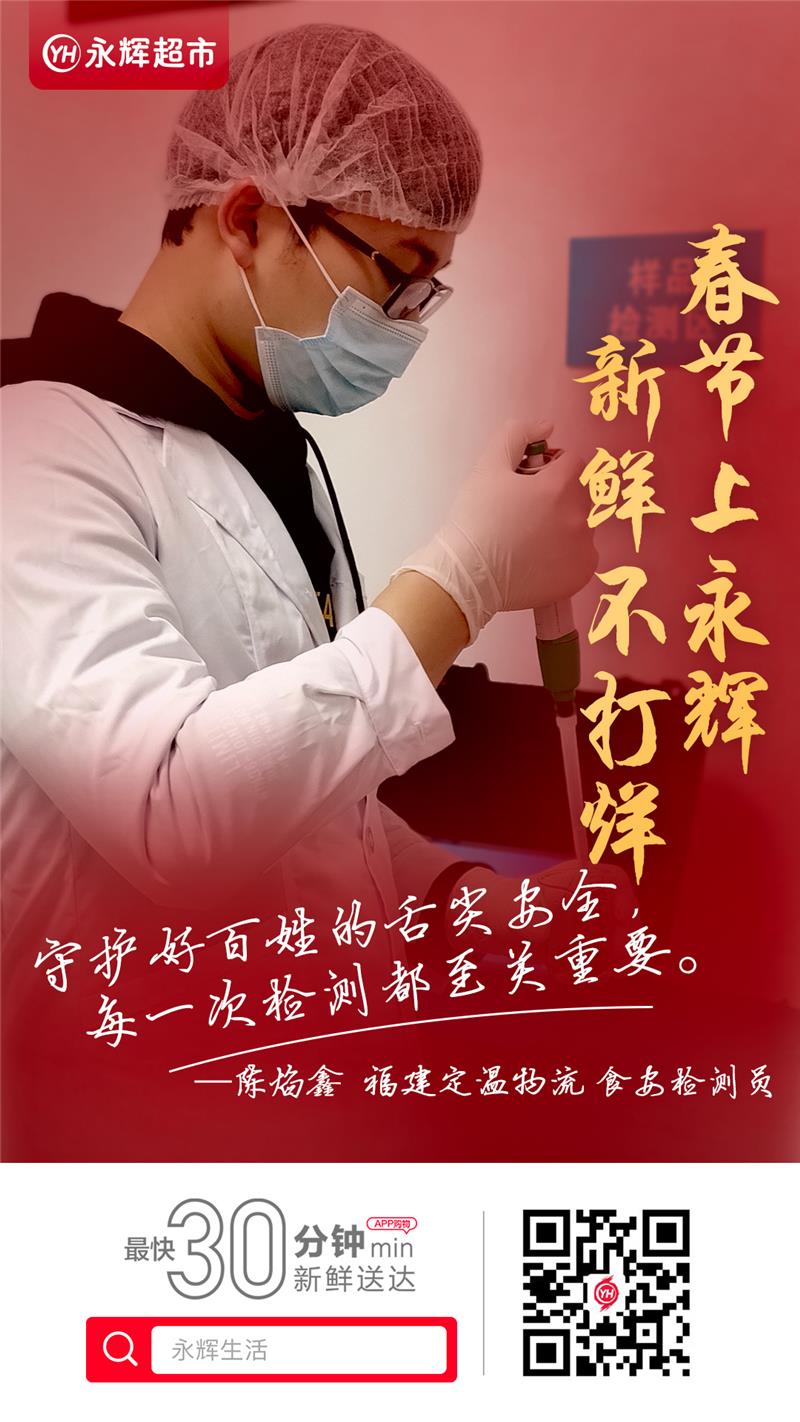 食安檢測員 陳焰鑫:我的日常工作是在物流端負責蔬果檢測,做好儀器設備的管理,嚴格遵守檢測實驗操作規范,保證檢測結果的準確性,對檢測不合格的產品及時反饋相關部門,為百姓守好舌尖上的安全。2020年永輝福建定溫物流共完成水果蔬菜合計257,739項檢測。