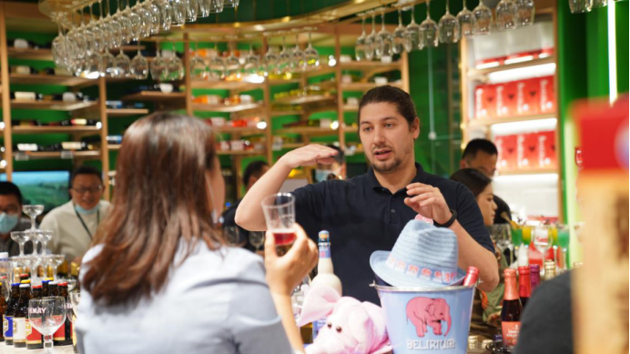 3月26日至28日,永輝詠悅匯酒庫首家沉浸式體驗店——福州泰禾廣場旗艦店開業。代表永輝對“酒類消費”的全新嘗試和進階。店內設置了烈酒蒸餾器、流光溢彩火烈鳥、名酒珍寶館、VIP私享品鑒室、通天酒具塔五大景點,并推出萬千酒品、酒趣知識、個性互動等活動,不僅打造了一個購物空間,更向消費者傳達了美好的酒文化體驗,滿足用戶的精神需求,為這個春天注入一股新動力。