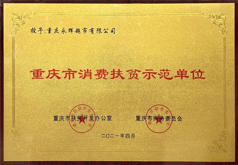4月12日,重慶市消費幫扶工作推進會議召開。為鞏固拓展消費扶貧成果,表彰先進,會上對扶貧示范單位、專館、專區和優質扶貧產品進行了表彰,重慶永輝超市榮獲“重慶市消費扶貧示范單位”稱號。