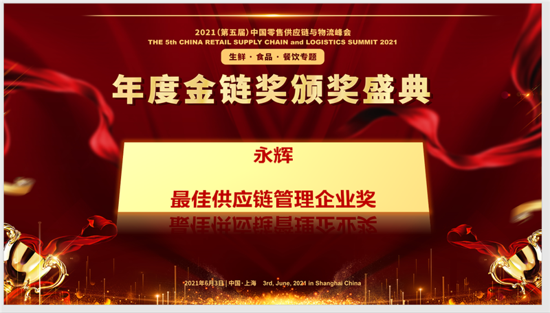 6月3日,第五屆中國零售供應鏈與物流峰會于上海舉行。會上,永輝獲得年度金鏈獎頒獎盛典頒發的“最佳供應鏈管理企業獎”。